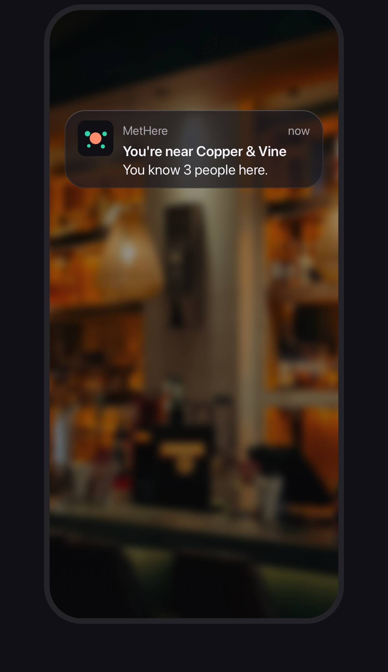 The bartender who starts your order before you sit down. The guy at the gym you've nodded at four times. The couple at the coffee shop on Sunday mornings. You know them. They don't belong in your phone. But they're not strangers either. MetHere is for the people in that gap — the ones the existing tools were never built for.
